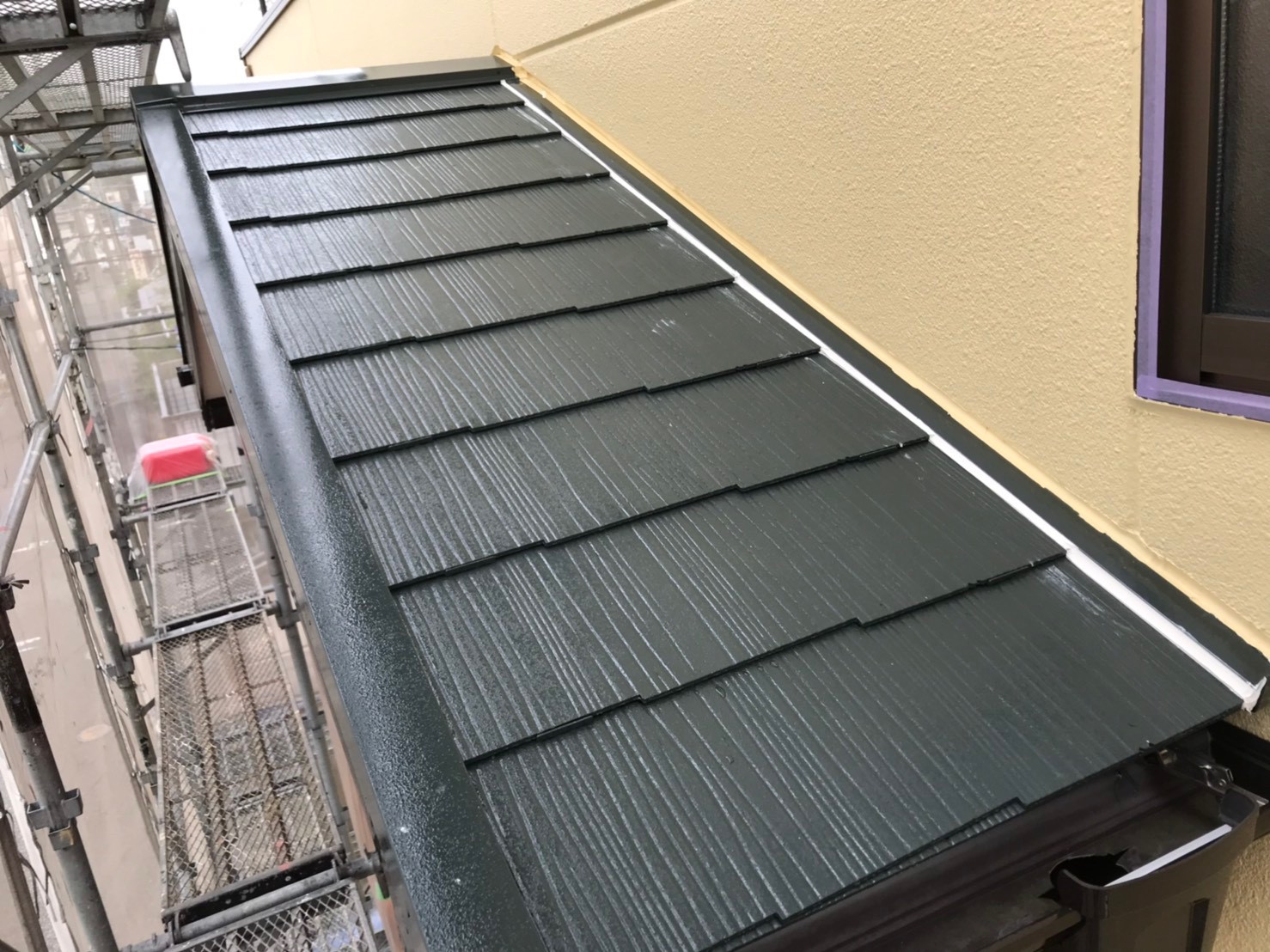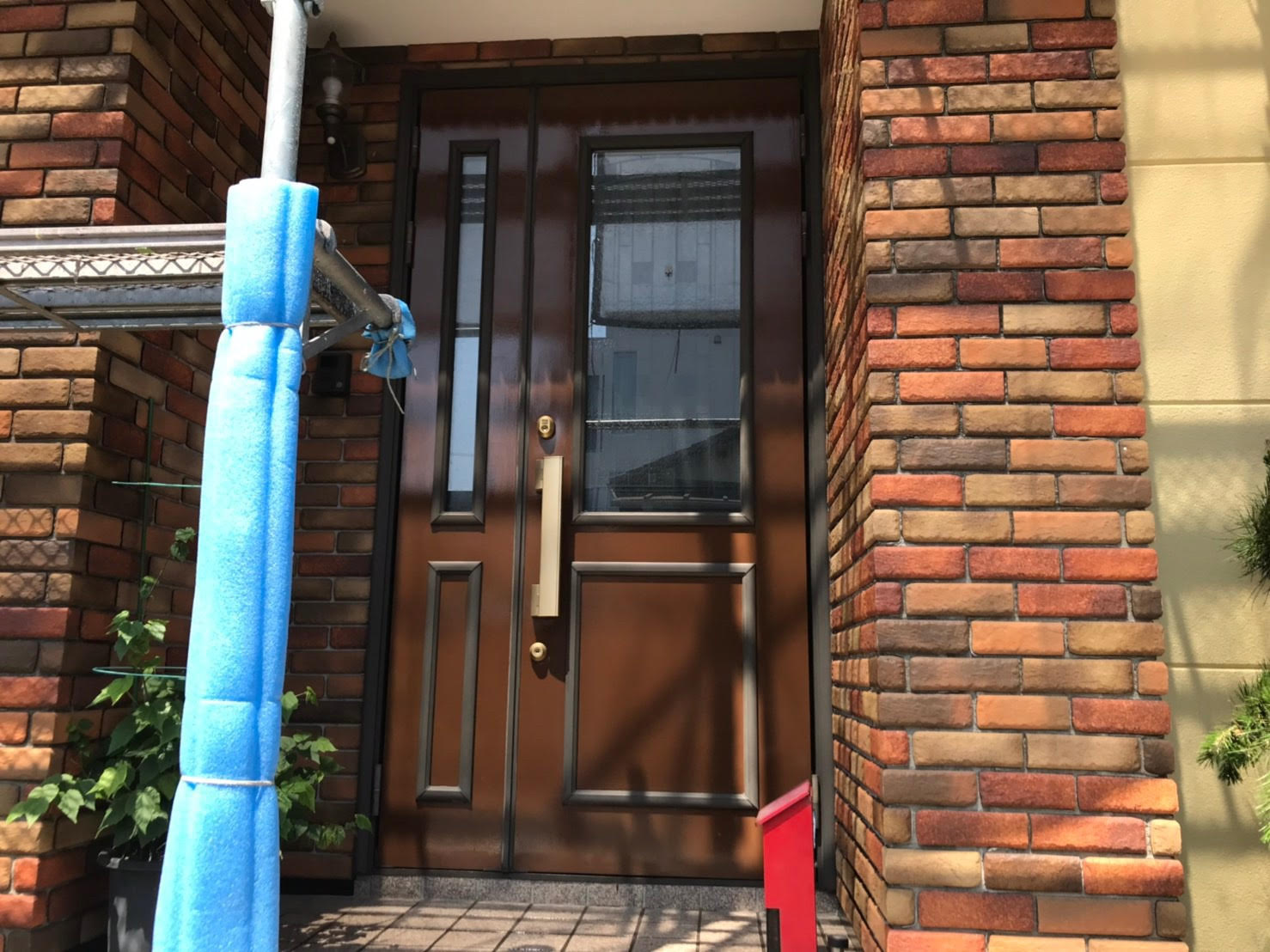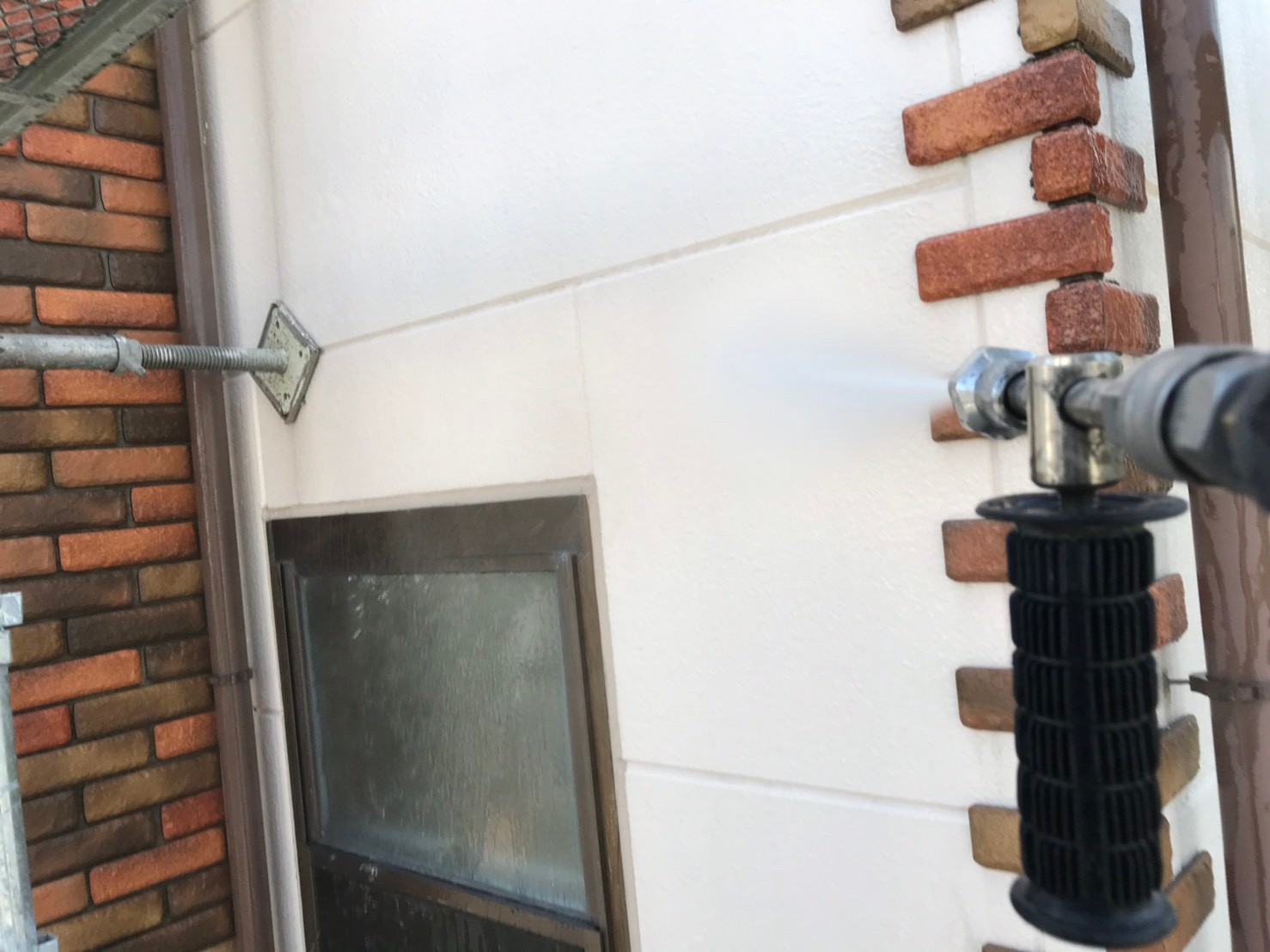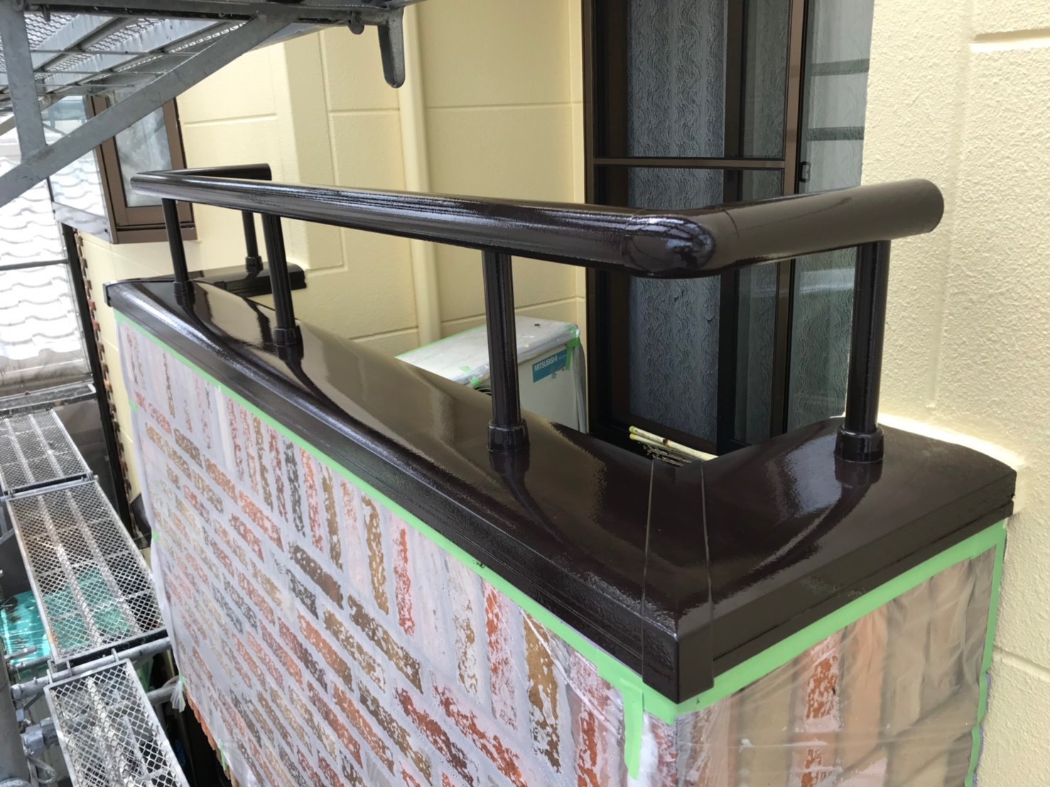 色褪せの目立つ屋根が、モスグリーンのお洒落な色に塗り替えられました。見えない部分ではありますが、 紫外線の影響を一番受けやすい屋根こそメンテナンスが重要になります。今回使用しました塗料、日本ペイントのファインパーフェクトベストは、シリコンを超えた耐久性を持ち、防藻、防カビ効果も優れた塗料になります。 外壁はレンガとの調和が取れた水性塗料のベージュ系カラーでの塗り替えでした。