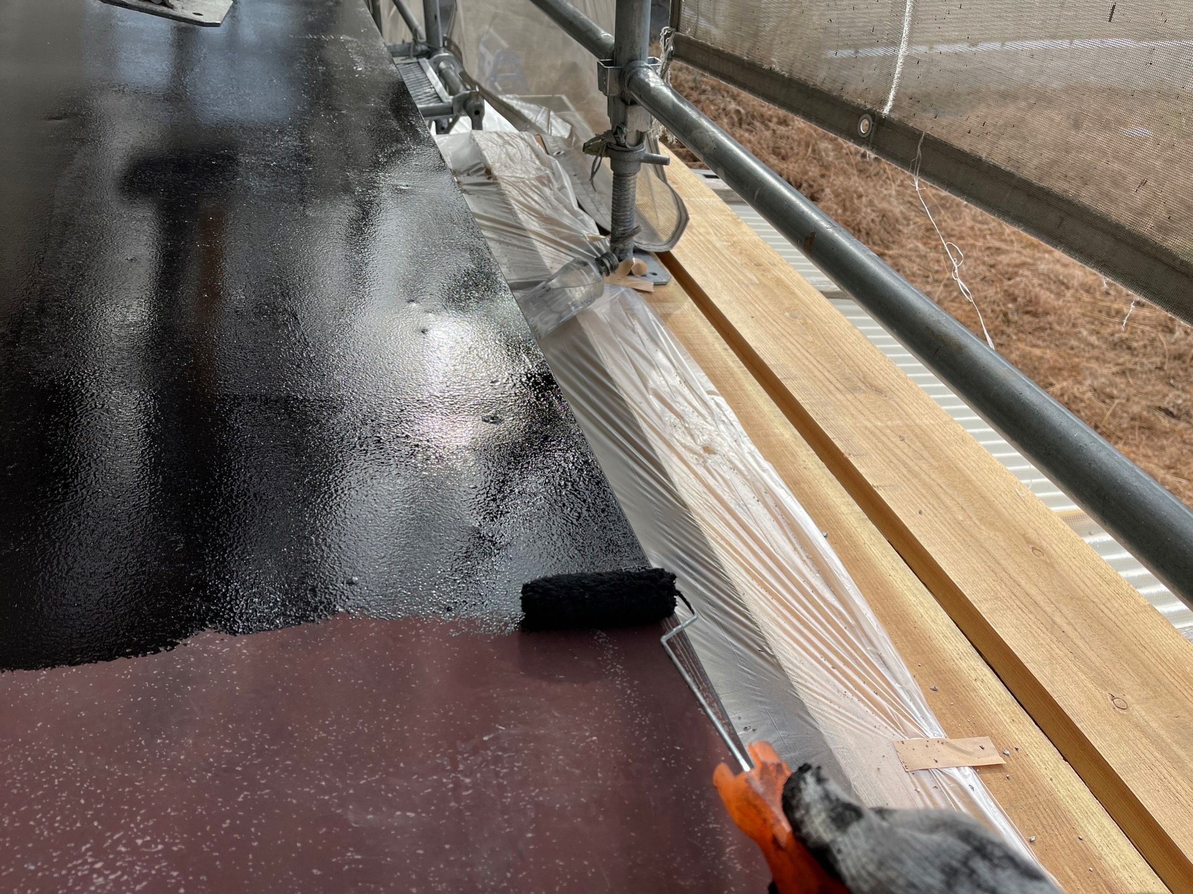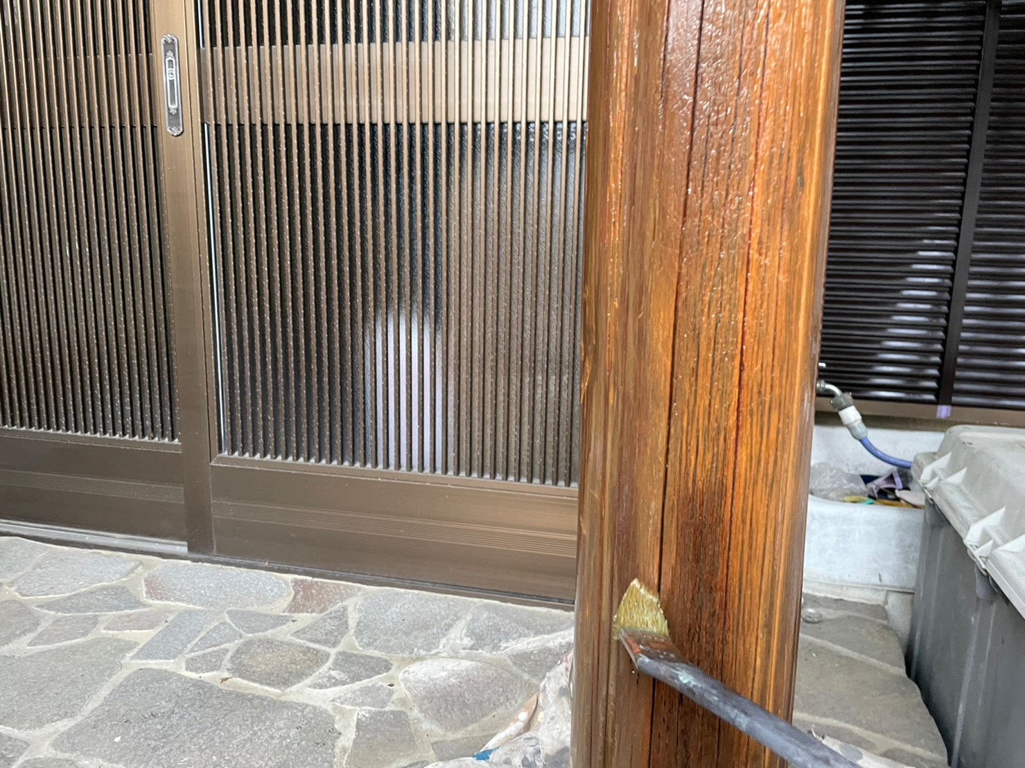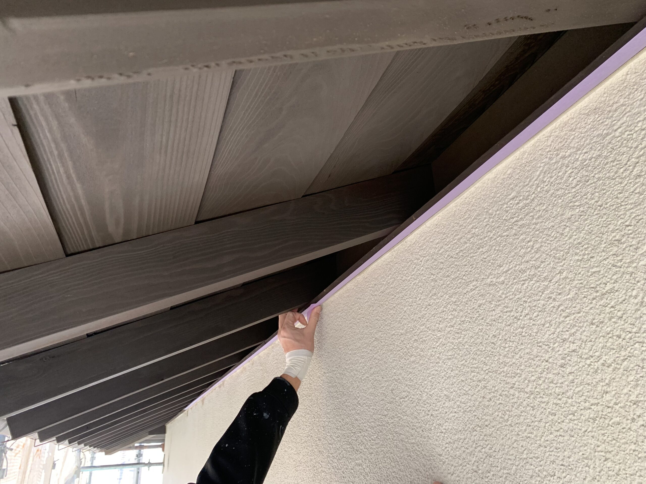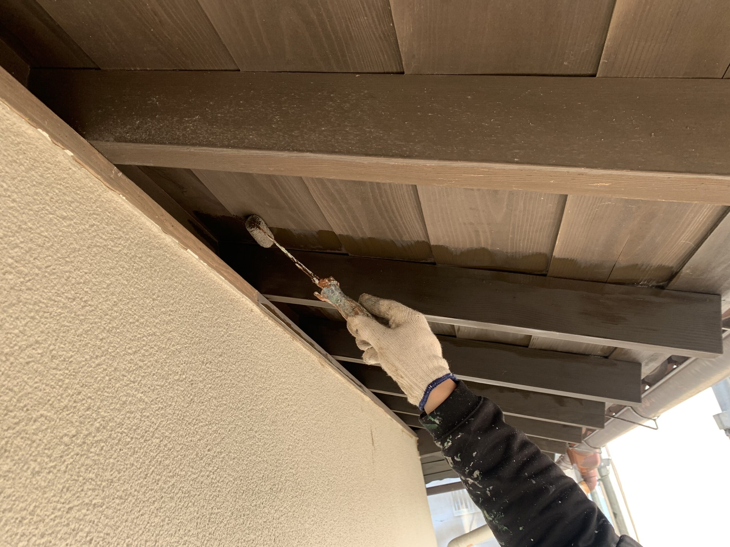 外壁のクラックは下処理を丁寧に行い美しく蘇りました。軒もマホガニーで木目を活かしながら着色する事により自然な風合いになりました!