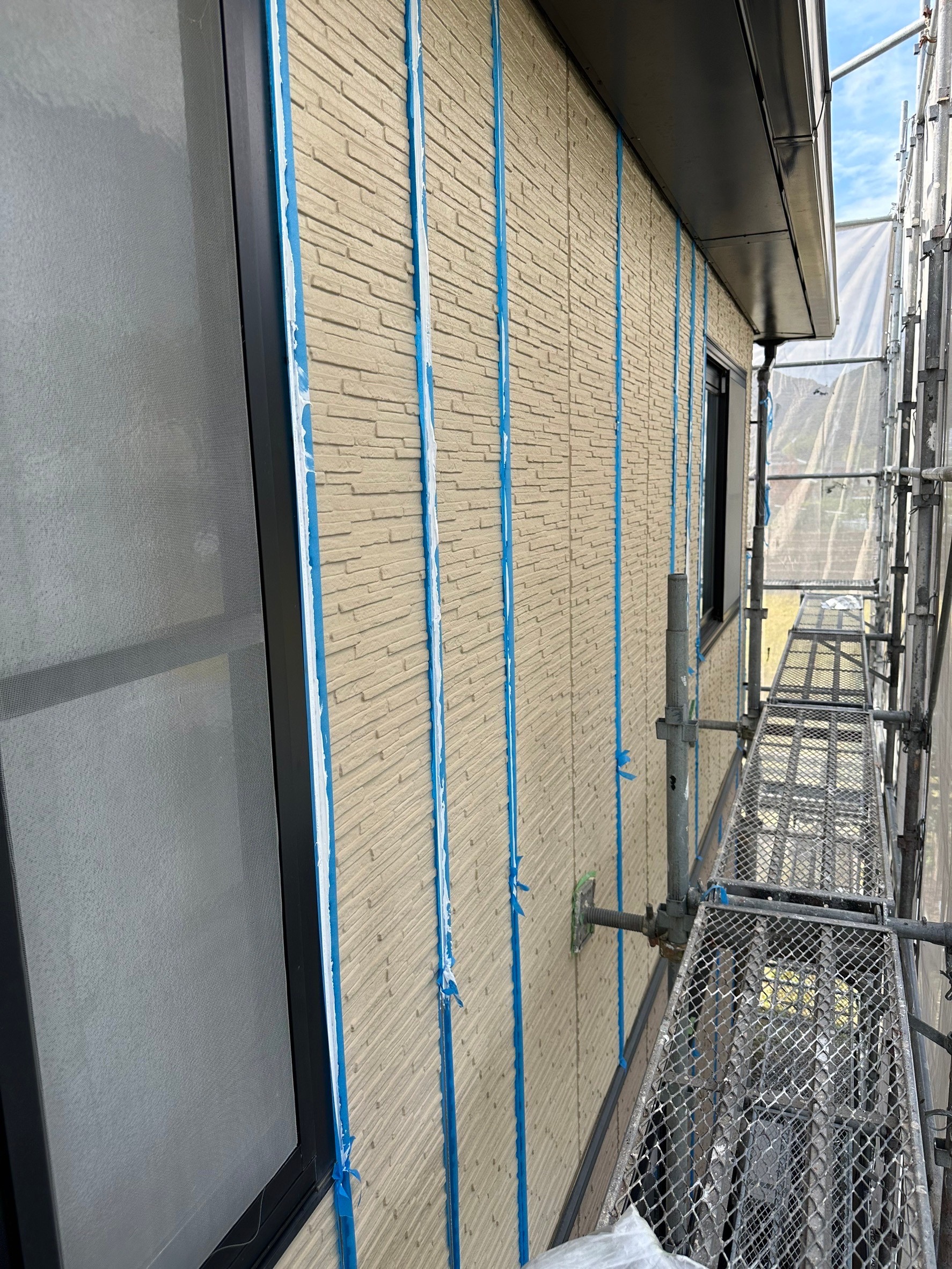 サイディング材の目地底にバックアップ材を取り付けていきます!