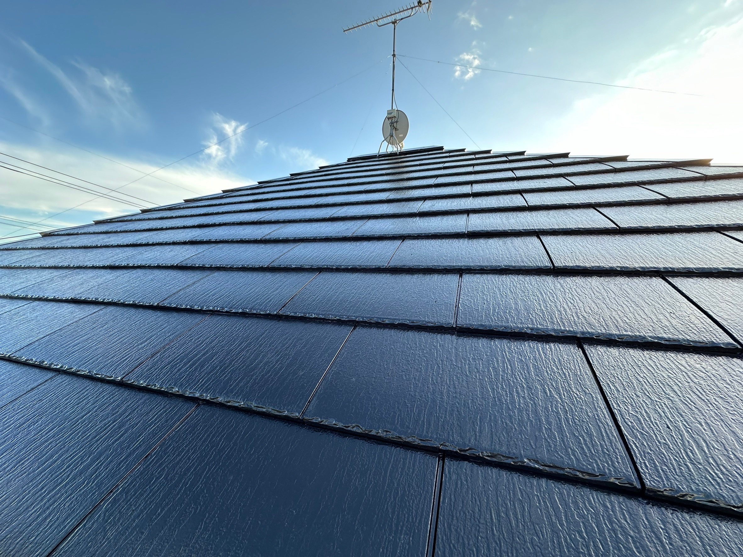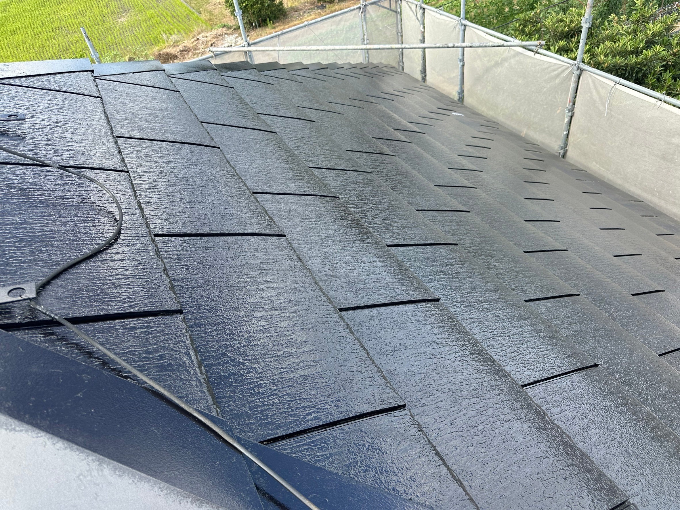 屋根材の重なり部分やジョイント部分など塗料が入りにくい所まで丁寧に塗装して綺麗に仕上がりました!