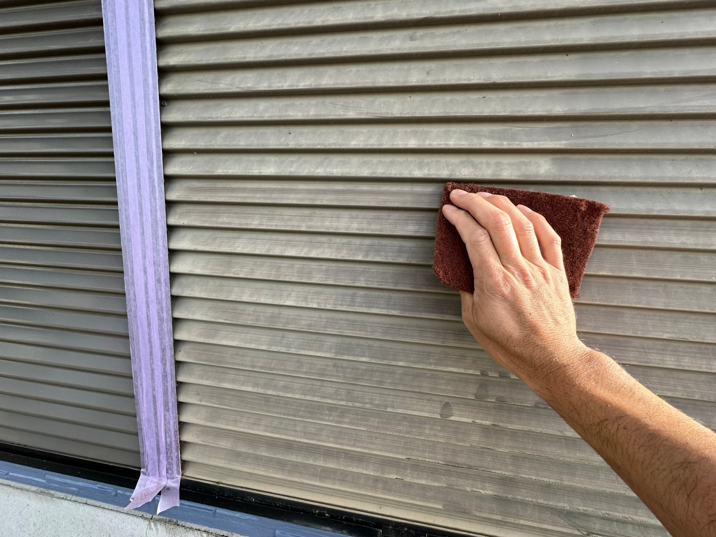 ナイロンタワシで表面の汚れを取りつつ、傷を付けて塗料の密着性を向上させます!